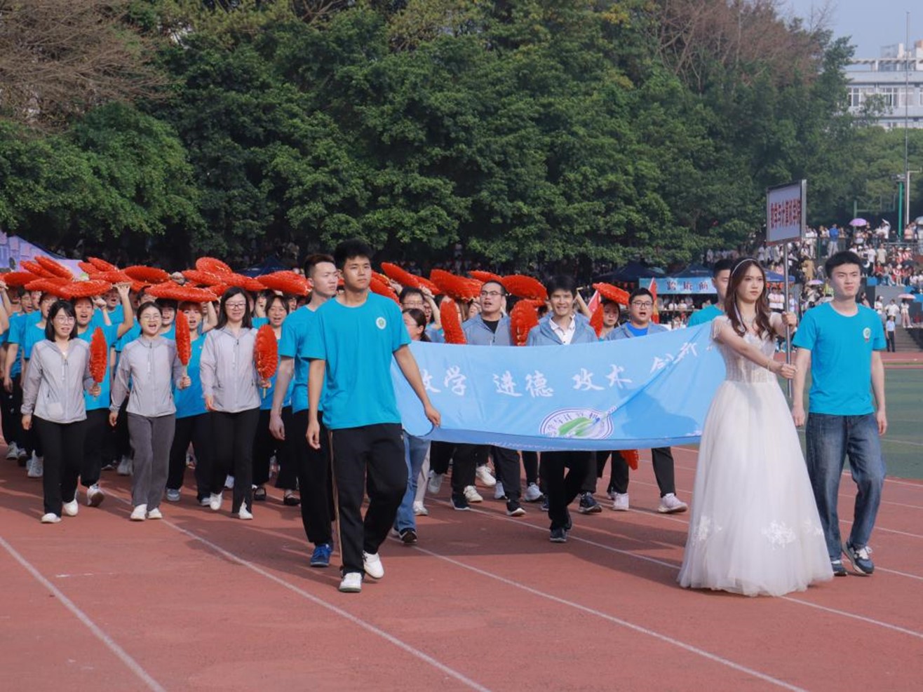 彩旗猎猎迎风展,欢呼声声震天地。2023年4月20日上午,学校第三届运动会暨第二届体育文化节开幕式在合川A校区操场隆重举行。校长李明海、校党委书记何大海、常务副校长王乃武、副校长周明星等在校领导,驻校理事,各二级学院、部门负责人出席活动,合川A、B校区全体师生参加。