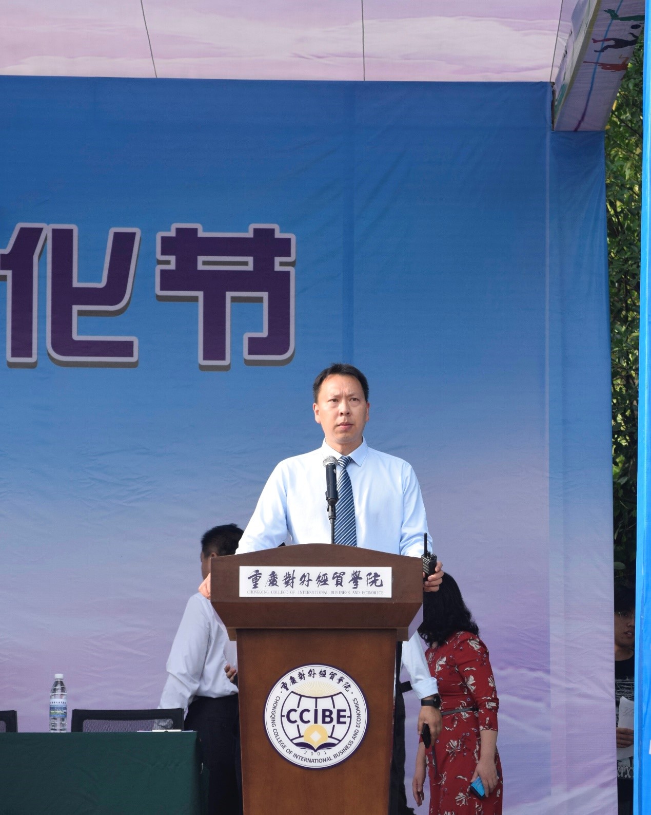 常务副校长王乃武为开幕式致辞,表达对本次运动会的美好祝愿,他表示,多年来,学校体育工作始终坚持健康体育、快乐体育的理念,始终坚持以人为本,以全面提升学生综合素质为目标开展体育教育与实践。本次运动会将凝聚人心,彰显贸院学子体育才能,是一次展现全校师生精神风貌的盛会!