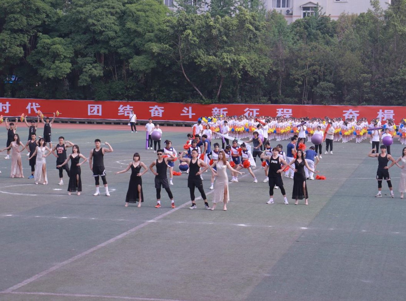 紧接着是上演精彩的开幕式表演活动,由音乐舞蹈学院学生表演的节目《华夏国风》,体育与健康学院学生表演的节目《你好,对外经贸学院》《广播体操表演》、拉丁舞《 Forever Young 》《青春与活力》、排舞《我愿全速奔向你》,精彩纷呈,或唯美优雅,或刚劲矫健,展现贸院学生青春阳光、健康向上的精神风貌,将开幕式活动氛围引向高潮。