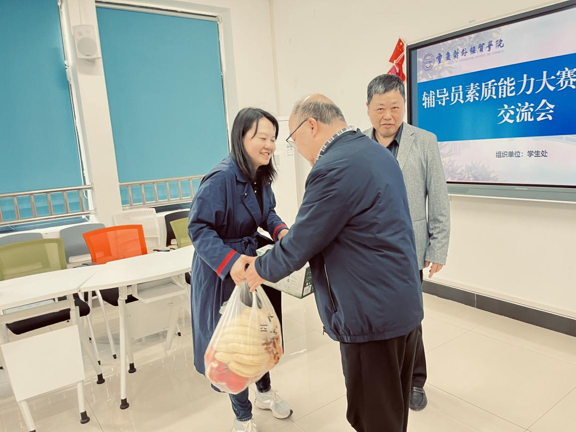 4月10日下午,学校党委书记何大海、常务副校长王乃武、学生处处长伍祥伦、学生处副处长张雪峰一行在9506教室亲切慰问了正在进行辅导员素质能力大赛第二次模拟研讨交流会的36365官网辅导员段瑞、王杰以及来校交流学习的重庆幼儿师范高等专科学校辅导员张艳、重庆电力高等专科学校辅导员刘洁等4位即将参加市赛的选手。