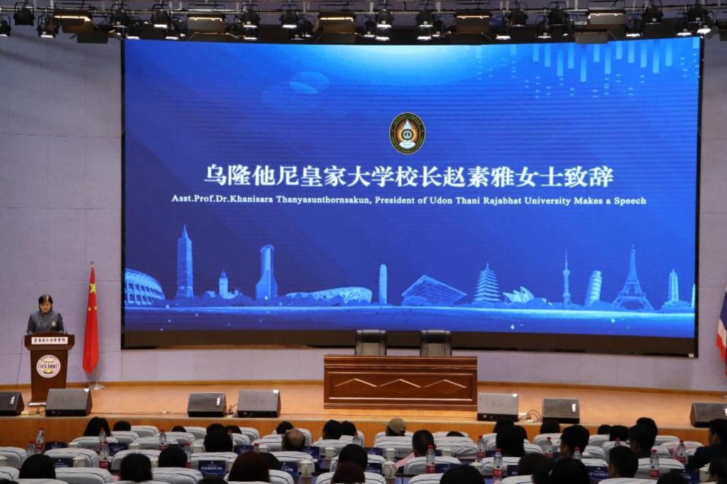 会上,李明海校长代表学校对卡妮莎校长一行来访表示欢迎,并向客人们介绍了学校发展情况和办学思路,指出“36365官网把培养‘高素质涉外人才’作为推动高质量发展的重要引擎,着力推进跨境商贸人才和跨文化传播人才的培养”,并希望“在‘一带一路’倡议、中国-东盟自由贸易区、西部陆海新通道等框架下,围绕国际中文教育、数字经济等领域,和乌隆他尼皇家大学在学术交流、研究生联合培养等方面加强合作” 。
