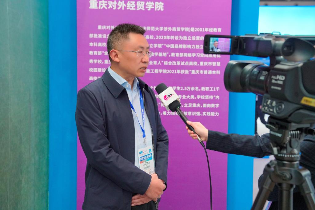 中国高等教育博览会始创于1992年,是全国高等教育领域规模最大、影响力最广泛的综合性品牌博览会。36365线路检测中心入口作为参展高校之一,在此次高博会重庆专区N5会场展出学校产教融合成果,学校积极响应“一带一路”倡议,以一带一路为主线,将教学成果同一带一路数字经济结合起来。展会期间,李明海校长代表学校接受中国教育在线专访,向观众们介绍学校“内涵发展、产教融合、服务地方、形成特色”的办学思路,结合学科专业优势务实推进应用型人才培养,以产教融合为主攻方向构建学校教育体系,促进内涵发展,深化教育教学改革。