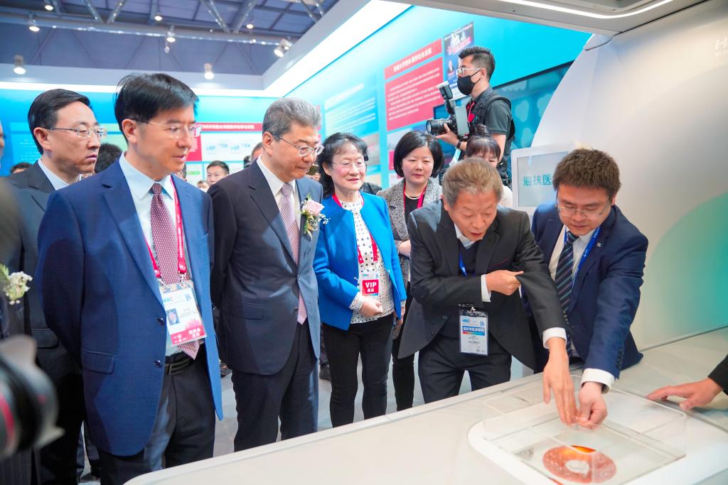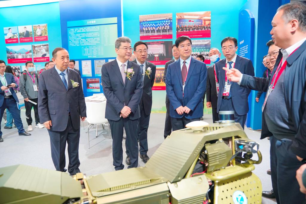 (图为吴岩副部长、杜玉波会长、张安疆副市长等领导一行参观高校专区展馆 李崇盈/摄)