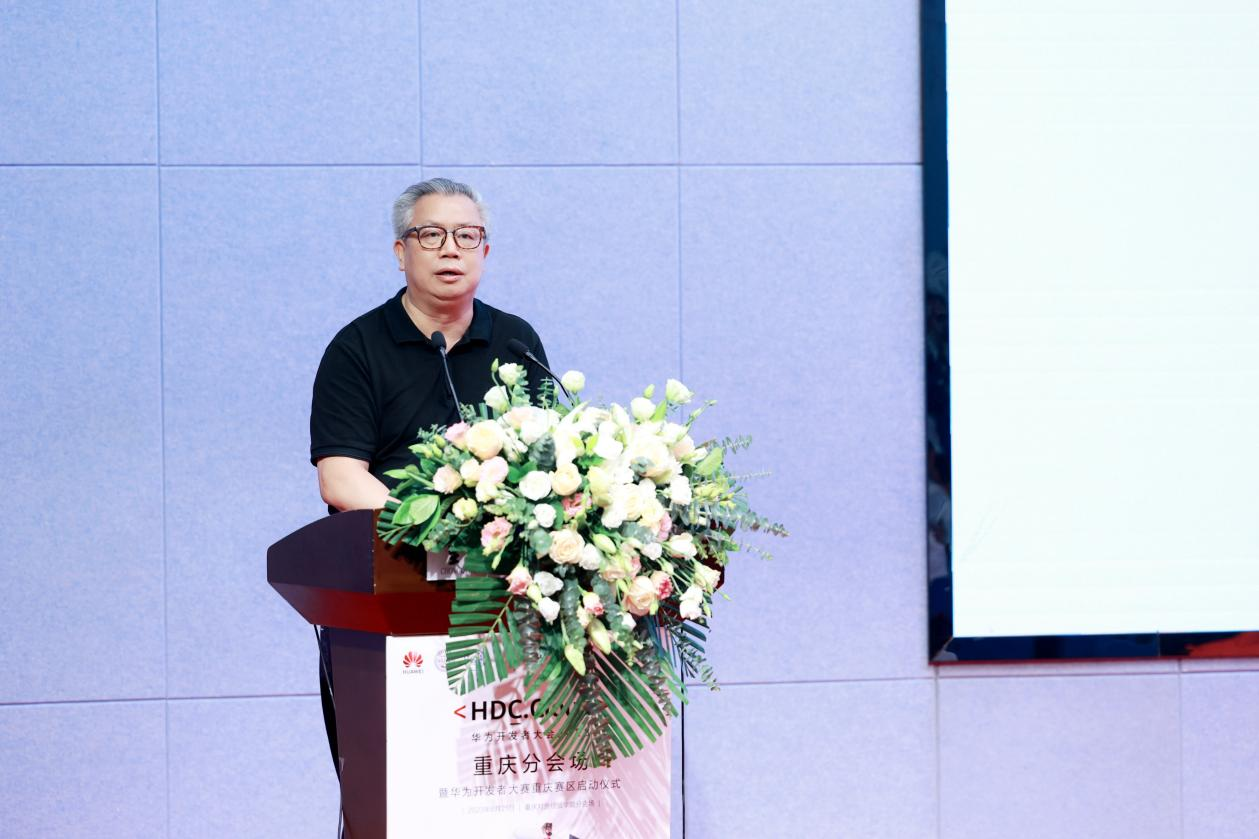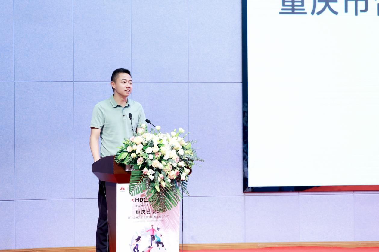 重庆市合川区教育委员会副主任秦燕江致辞,他表示,合川正大力实施教育强区、科技强区、人才强区战略,大力促进普职融通、产教融合,打造产教融合的先进制造业基地,加快打造成渝地区双城经济圈建设的先行区。合川区非常重视科技创新和人才培养,希望通过华为这样的比赛为广大开发者提供一个展示自己技术实力和创新能力的舞台,推动科技创新和产业升级。并希望比赛激发参赛者的技术热情和创新意识,推动数字化转型和智能化升级进程,为合川区和重庆市的经济社会发展做出更大的贡献。