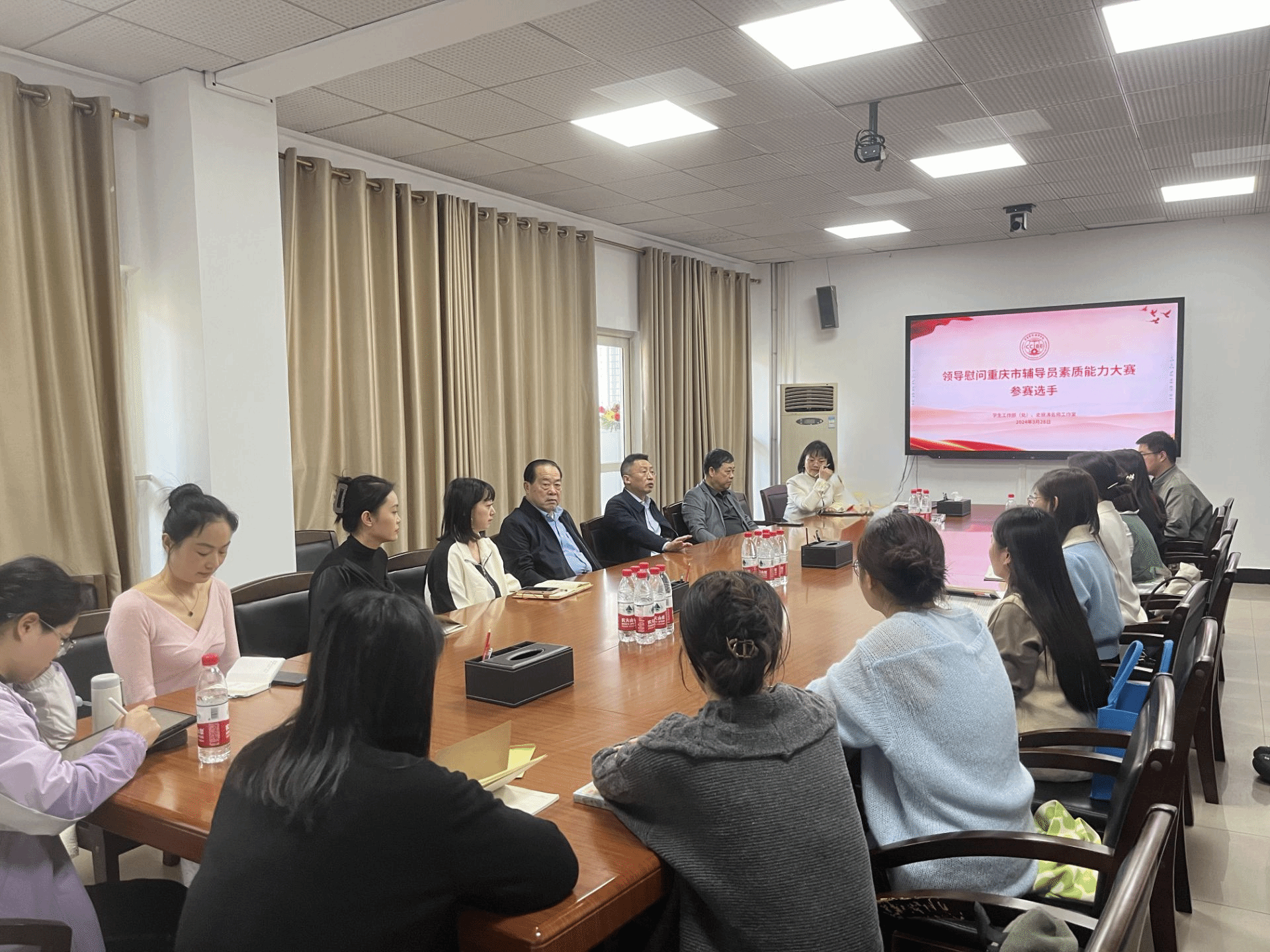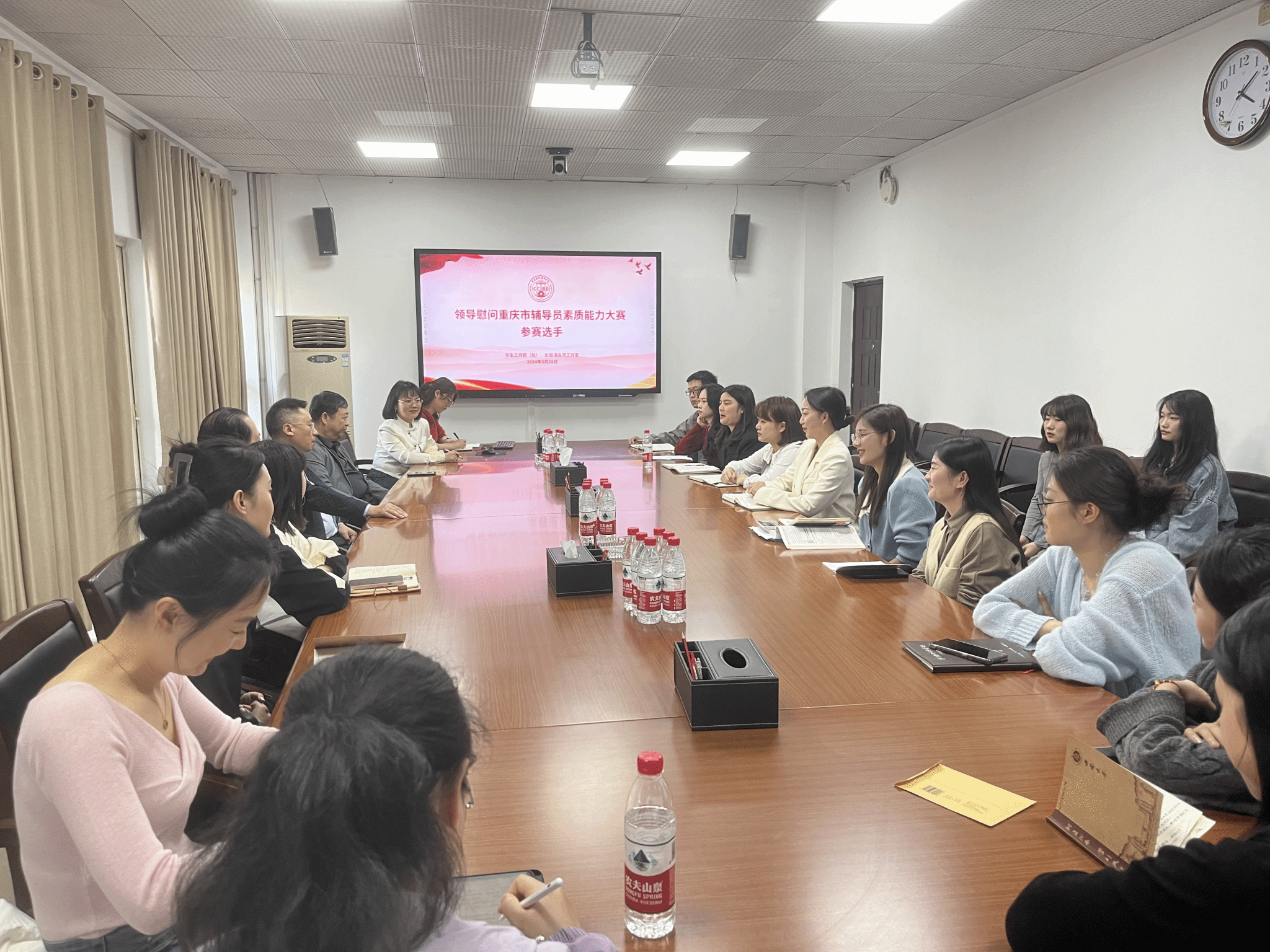 3月28日,重庆市第十二届辅导员素质能力大赛备赛团于A校区第二会议室开展备赛集训总结。学校校长兼党委副书记李明海、常务副校长王乃武出席活动并对36365官网选派参赛辅导员王杰、彭瑞及备赛团成员进行亲切慰问。学生处处长伍祥伦、团委书记史丽涛参加活动。