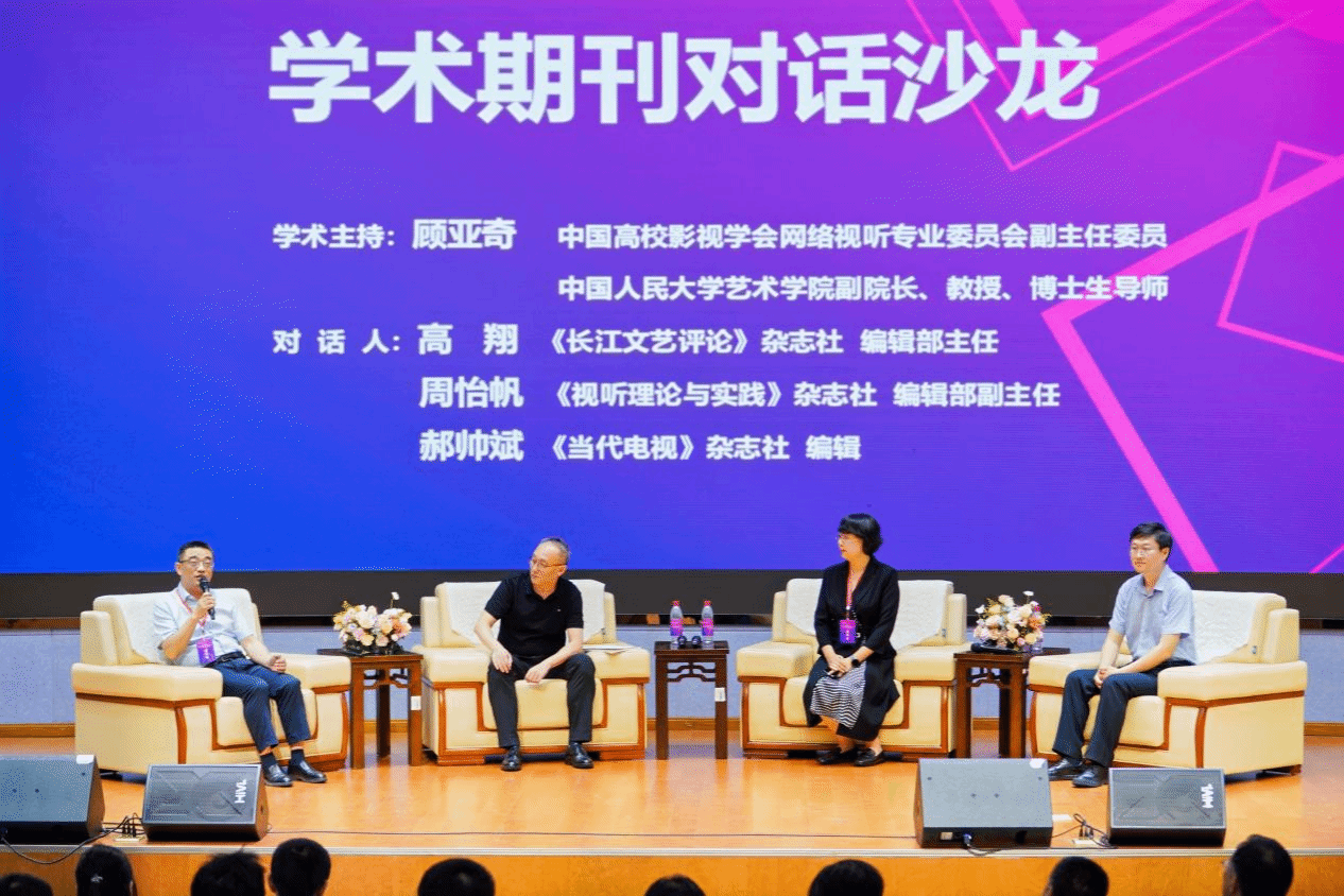 下午,论坛进入“学术期刊对话沙龙”环节。沙龙会由中国高校影视学会网络视听专业委员会副主任委员、中国人民大学艺术学院副院长顾亚奇教授主持,《长江文艺评论》杂志社编辑部主任高翔、《视听理论与实践》杂志社编辑部副主任周怡帆、《当代电视》杂志社编辑郝帅斌三位嘉宾参与沙龙对话。