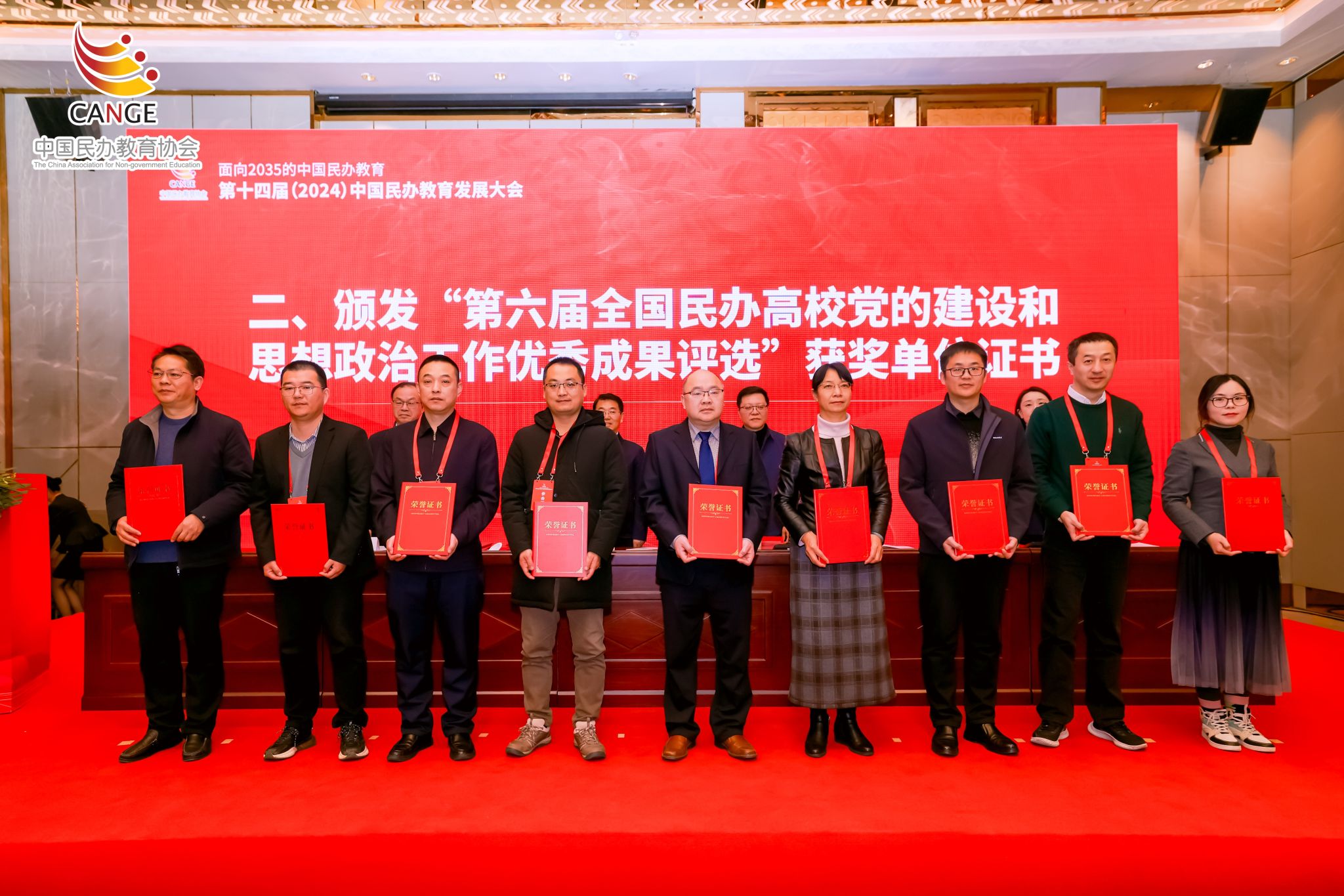 近日,第十四届(2024)中国民办教育发展大会在北京召开。会上颁发了由教育部思想政治工作司指导,中国民办教育协会党建专业委员会主办的第六届全国民办高校党的建设和思想政治工作优秀成果评选活动获奖单位证书,36365官网申报的《构建“1551”组织建设模式,着力提升基层组织力》项目荣获二等奖。这不仅是对36365官网党建工作和思想政治工作的高度认可,也是对36365官网党委长期致力于提升基层组织组织力、推动学校全面发展的肯定。学校党委书记何大海出席会议并上台领取了这一奖项。