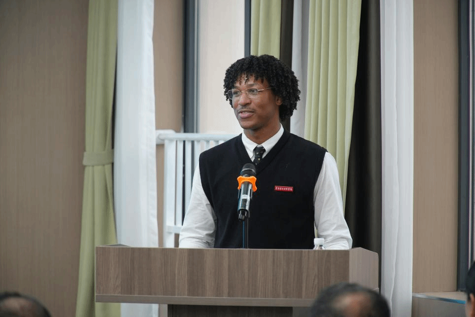 来自美国的乐维老师认为,贸院的七年时光彻底地改变了自己,使其在保持自我的同时学会与不同文化背景的人建立真诚的连接。来自泰国,获得重庆市人民政府外国留学生市长奖学金的程漫同学用流利的中文分享了她在重庆的学习生活体验。“第一次吃火锅时,我被辣得流眼泪。但现在,这已经成为我最想念的家乡味道。”她重点讲述了自己参与学校文化活动的经历:“书法课上,老师手把手教我写‘福’字;春节时,中国同学邀请我去他们家吃年夜饭。这些温暖的点滴让我感受到,文化差异不是障碍,而是互相理解的契机。” 作为新生代表,来自阿尔及利亚的米卡表示:“当我第一次站在解放碑前,看着川流不息的人群,我突然觉得在这座城市里,我不只是一个外国人,更是一个新重庆人。”她分享了自己如何在中国同学的帮助下克服语言障碍,逐渐融入校园生活的故事。