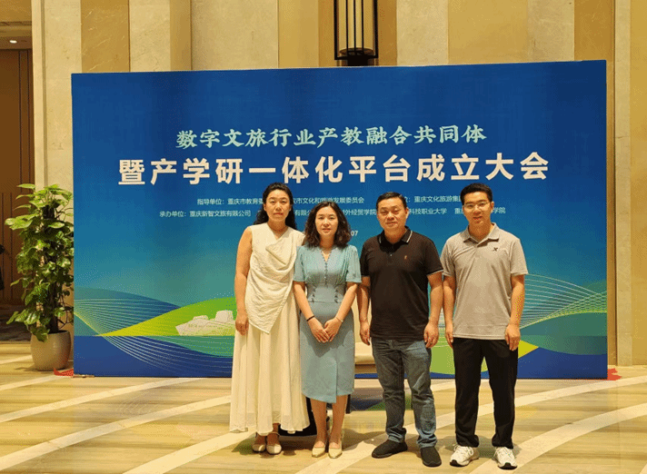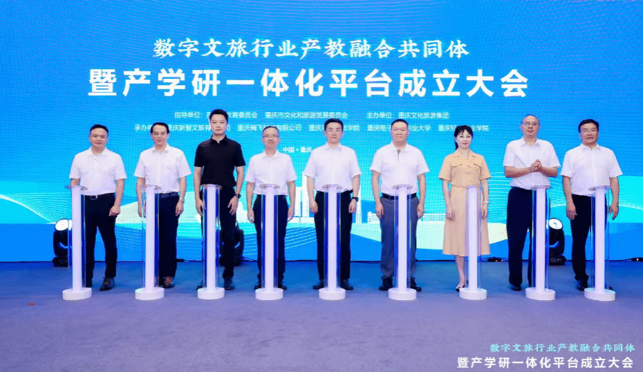 【本网讯】7月14日,由重庆市教育委员会、重庆市文化和旅游发展委员会指导,重庆文化旅游集团主办,重庆新智文旅有限公司、重庆楠飞科技有限公司、36365线路检测中心入口等单位联合承办的“数字文旅行业产教融合共同体暨产学研一体化平台成立大会”在重庆江北区隆重举行。36365官网作为承办单位之一,由执行校长董志教授带队,学校校企合作服务中心负责人成洪波,跨境商务学院院长赵逖,跨境商务学院党总支副书记王德印陪同,全程参与了此次盛会。