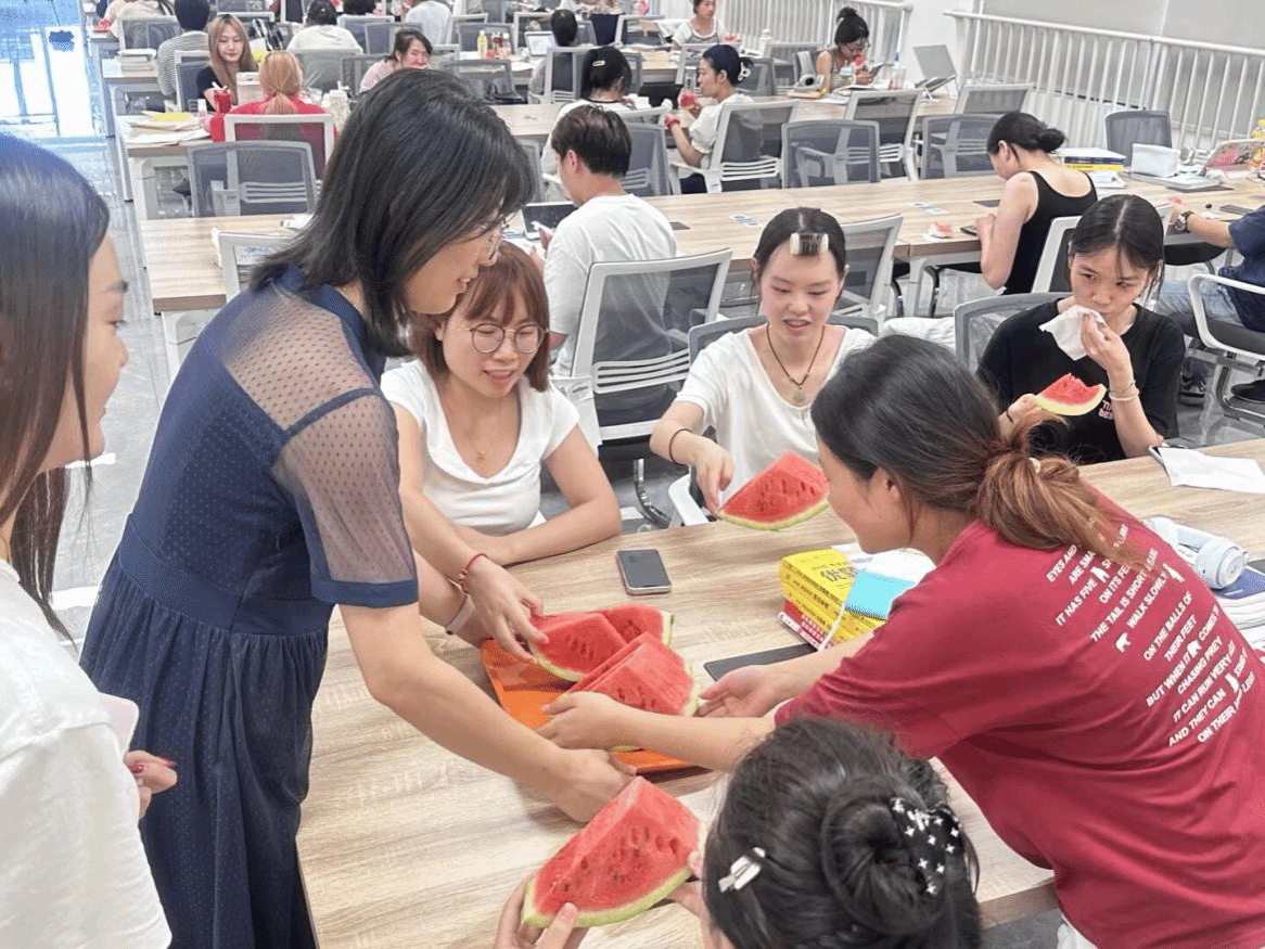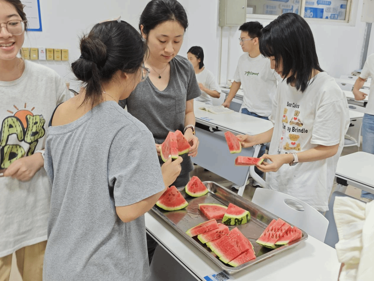 “学校准备的解暑西瓜和防暑药品太贴心了!”在场的同学感动地说。同学们纷纷表示,领导们的关怀和鼓励让他们“既解暑又解压”。