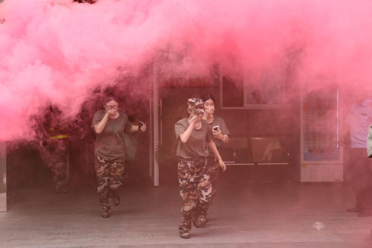 培训环节结束后,应急疏散逃生演练在A、B两校区同步展开,有效将前期理论知识转化为实战能力,全面检验新生的应急反应水平。