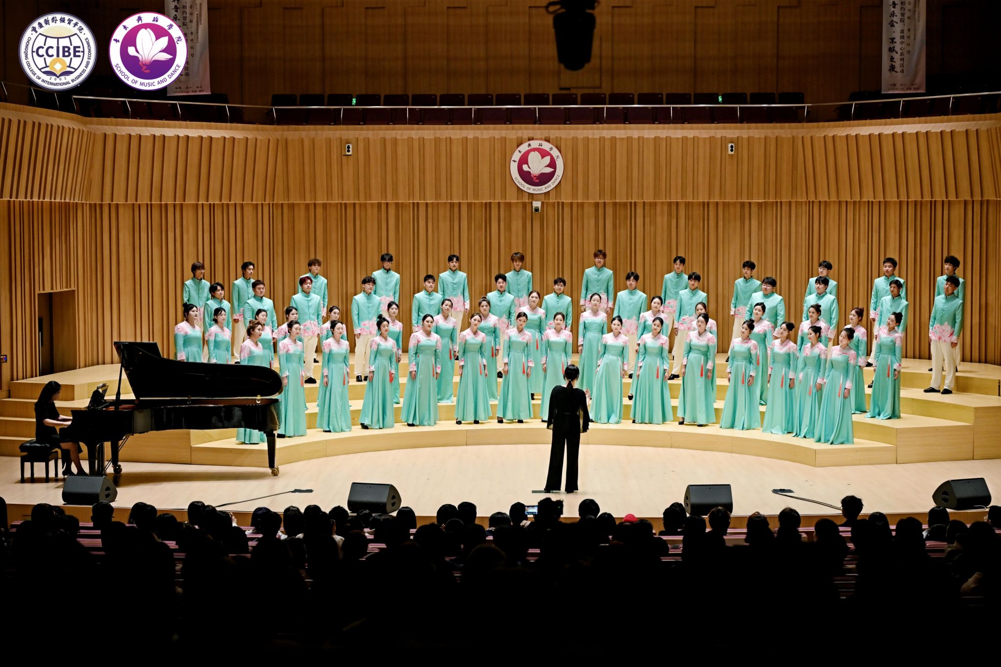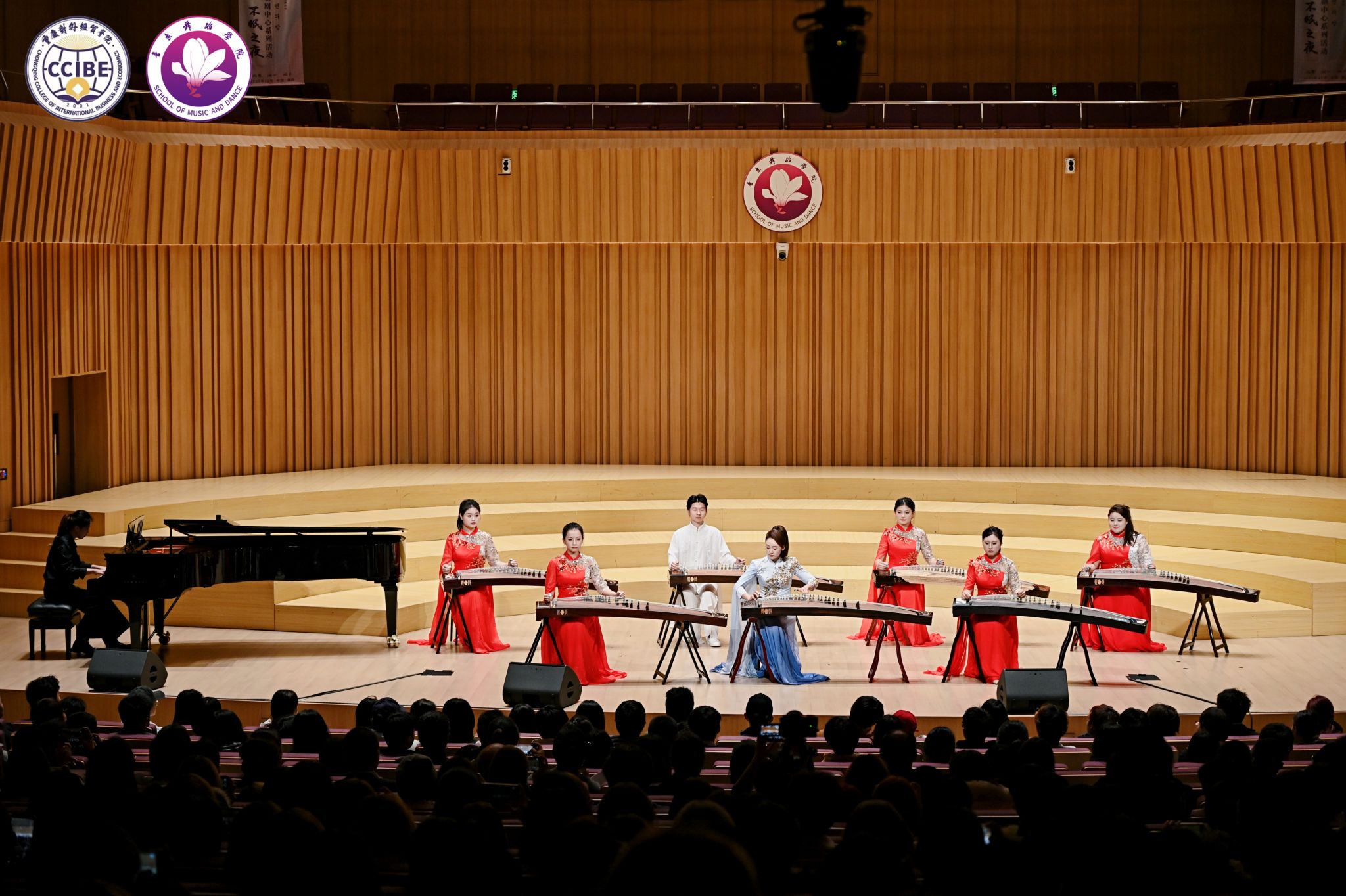 11月10日晚7:00,第三季中韩音乐会·不眠之夜暨“相约贸院”歌剧中心系列活动在学校B校区玉兰艺术中心华彩音乐厅温情上演。本次活动由音乐舞蹈学院主办、校园文化委员会承办,重庆市合川区文学艺术界联合会、合川区音乐家协会指导。学校副校长、校园文化委员会主任、音乐舞蹈学院院长王婕教授,合川区音乐家协会主席杨晓超及副主席唐芙蓉、孔祥爱出席活动,学校相关职能部门负责人与音乐舞蹈学院师生代表共同观看演出,活动由学院教师孙连鹏、张一凡主持。