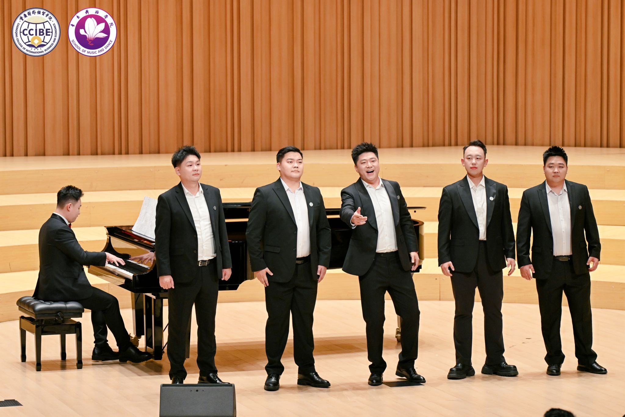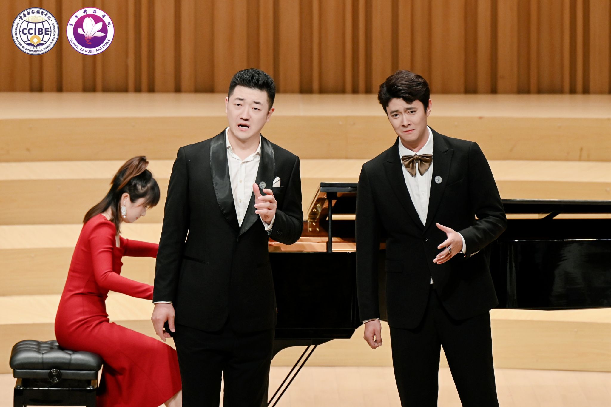 中外艺术融合环节中,韩国歌手李明铉、朴秀珍合作的普契尼歌剧《波西米亚人》选段《冰凉的小手》《人们叫我咪咪》以及浪漫二重唱《多么美丽的姑娘》实现了文化共鸣;尾声的合唱《细雨飘》(重庆酉阳民歌改编)与校歌《经世经贸》,将地方文化与校园精神相融,引发全场情感共鸣。