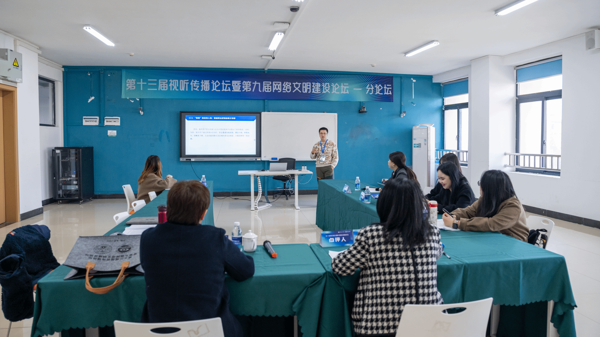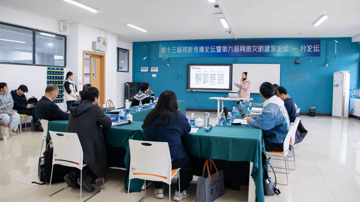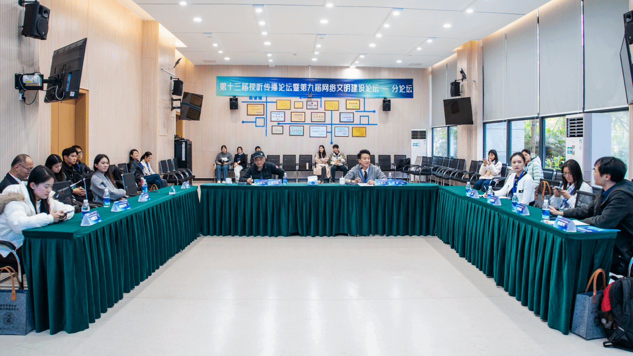 除主旨论坛外,本届论坛还设置了十二场专题论坛,议题涵盖“AI技术在视听传播中的应用与创新”“AIGC伦理与治理”“数字丝路与国际传播”“微短剧与短视频生态”“非遗视听活化”“跨文化认同与共享”等多个前沿领域,与会学者展开了广泛而深入的交流。影视融媒体学院教师8篇学术论文入围并作专题发言,充分展现了学院扎实的学术研究能力和在视听传播领域的深厚积累。