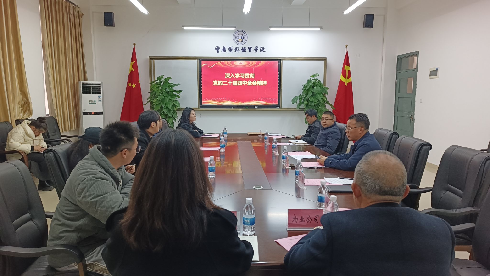 当日,铜梁校区管委会主任张伟东同步在勤政厅组织校区各职能部门及二级学院负责人开展专题学习,传达解读党的二十届四中全会精神,部署落实举措,推动会议精神在校区管理服务和教学科研一线落地生根、开花结果。