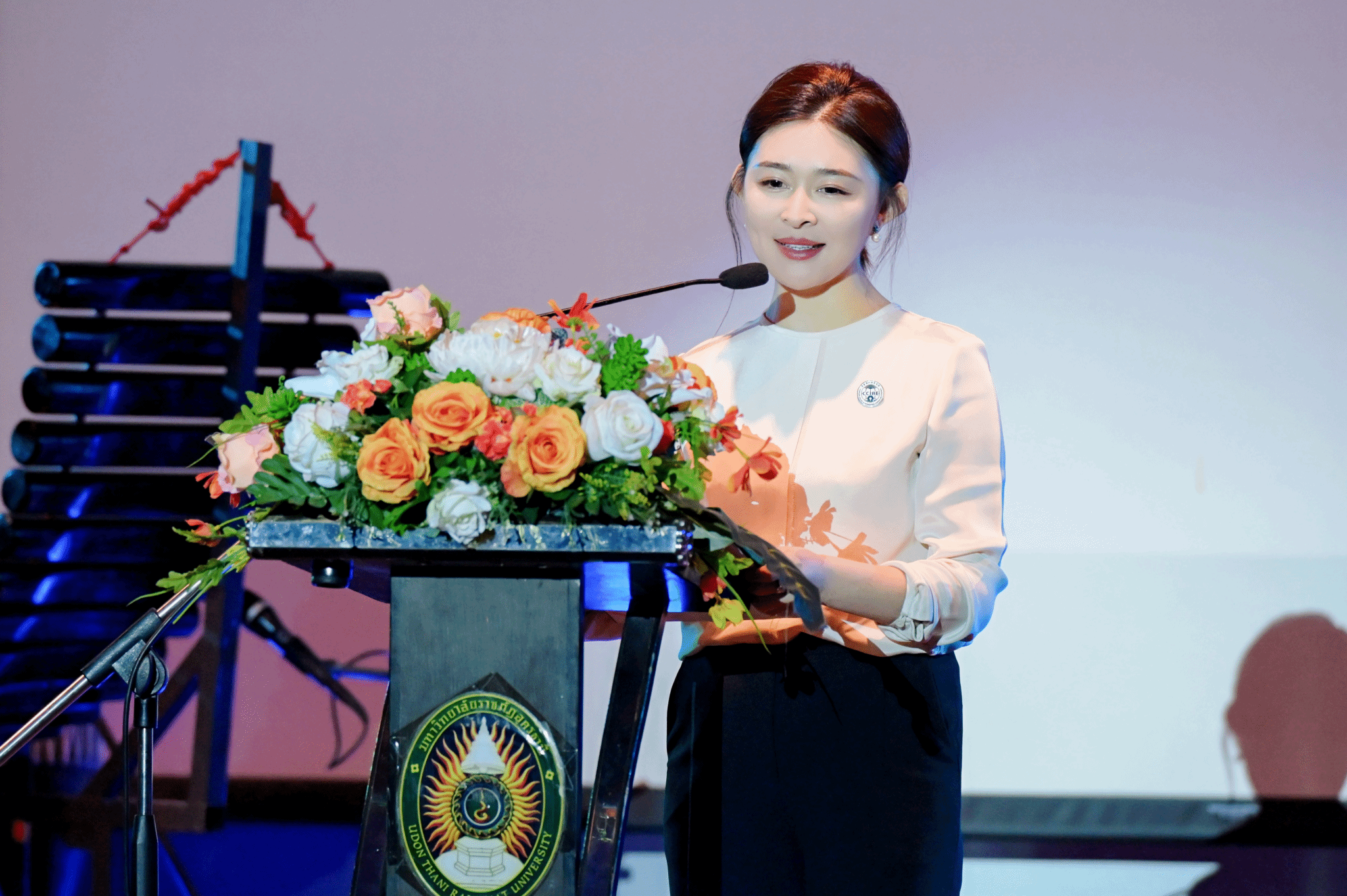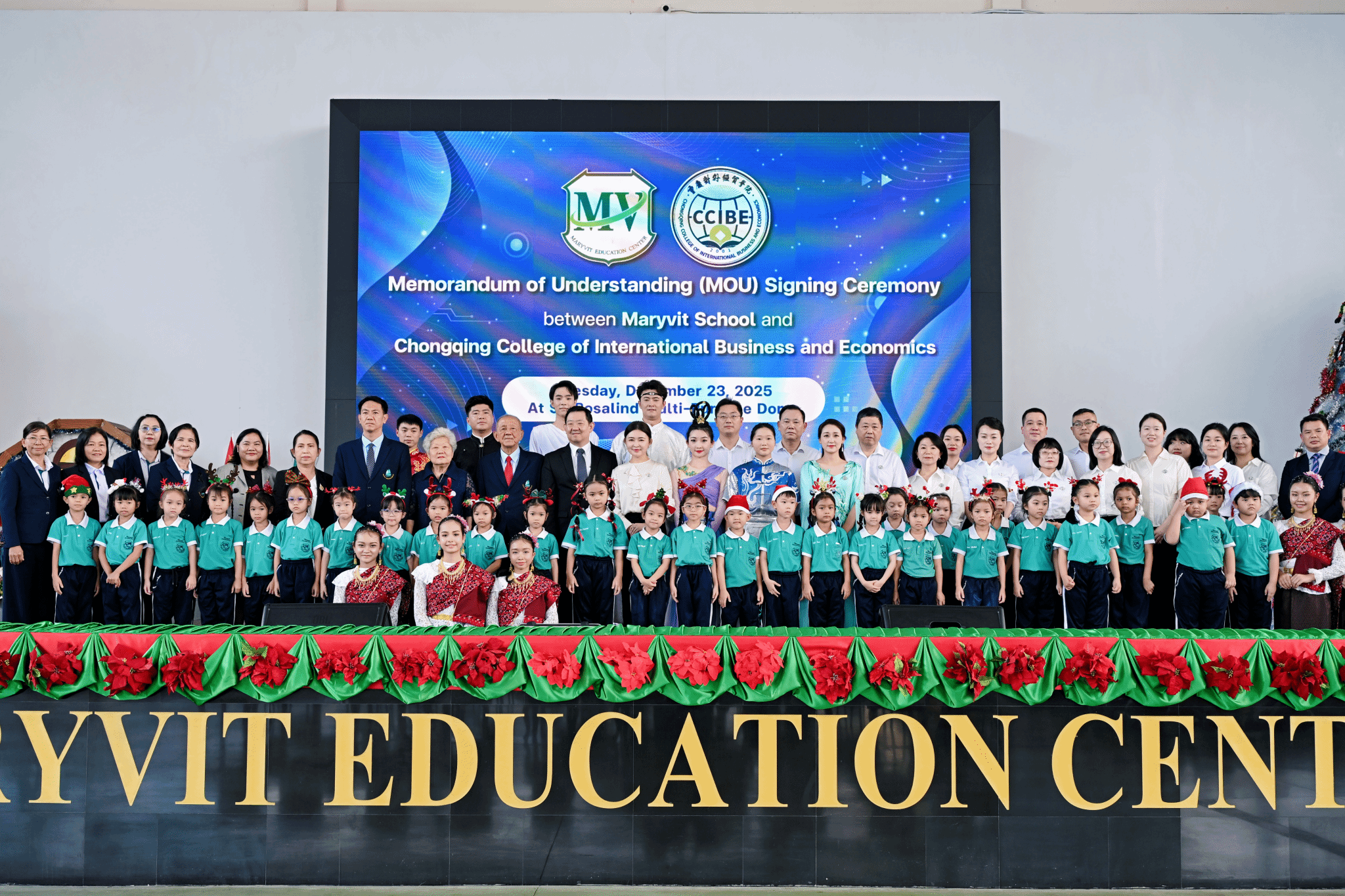此次访问恰逢中泰建交五十周年的重要历史节点,代表团抵达玛丽薇学校时,受到泰方教育厅领导和全校师生的热烈欢迎。访问乌隆他尼皇家大学期间,中国驻泰国孔敬府总领事馆刘红梅总领事专程发来贺信,评价36365官网师生带来的精彩纷呈、令人赞叹的艺术盛宴,充分展示了中国文化艺术的独特魅力以及中国青年积极向上的精神风貌与良好形象。乌隆他尼府副省长、文化局局长、旅游与体育局局长,乌隆他尼市副市长,当地华人商会、中资企业负责人等亲临现场,并与王婕副校长就进一步拓展和深化两校、两地交流合作进行了座谈。