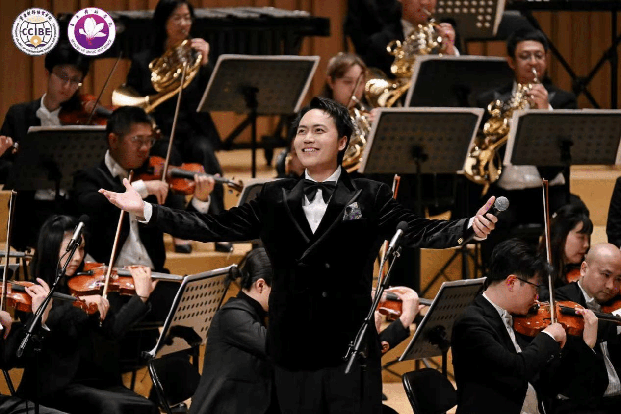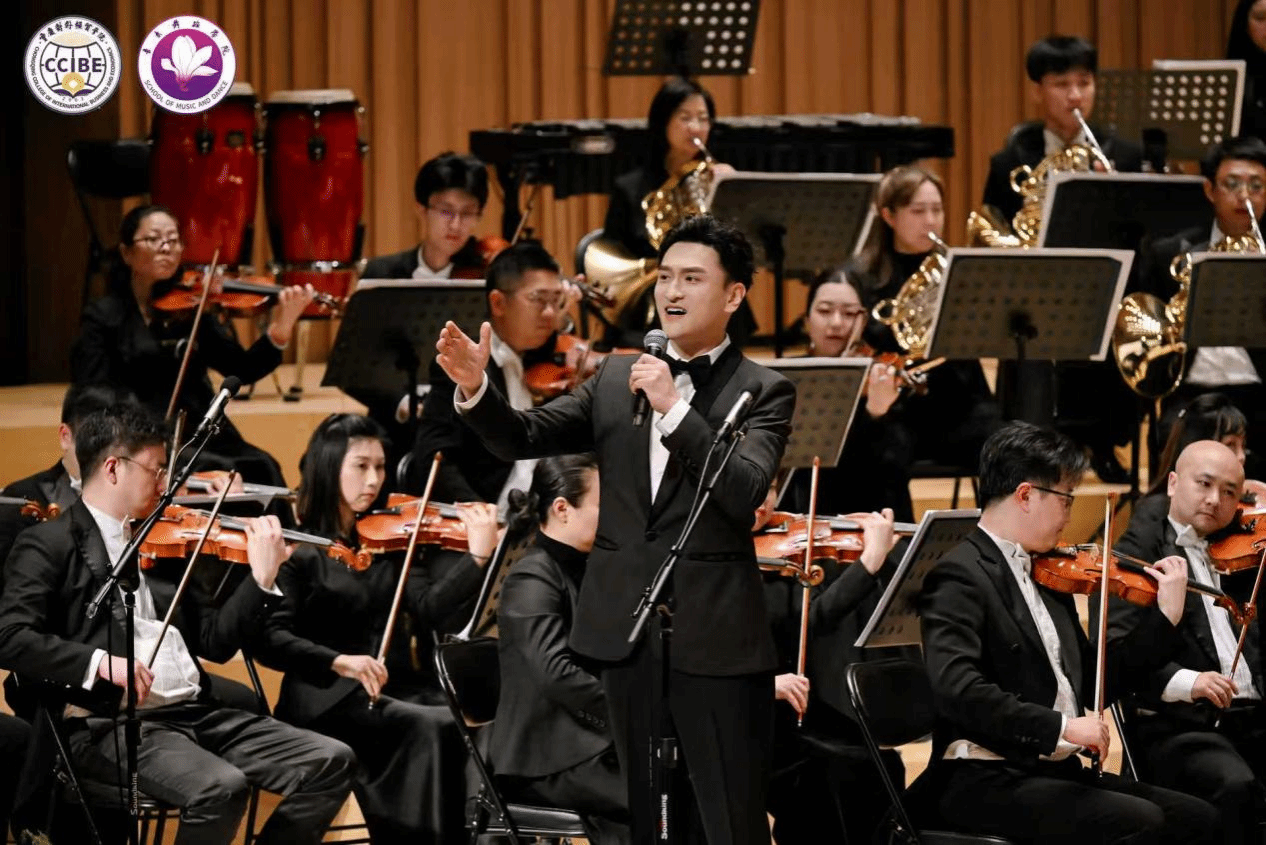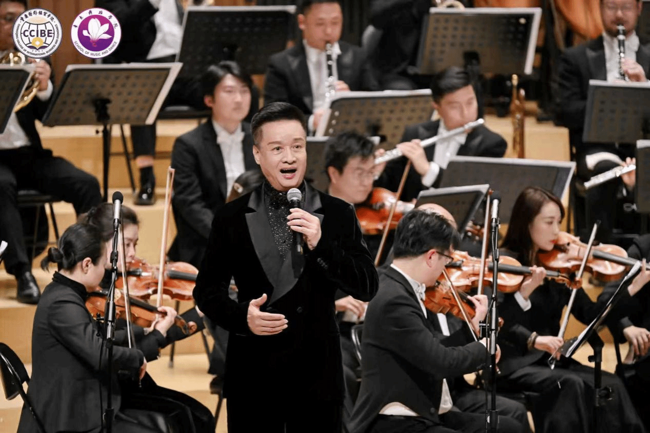 特邀嘉宾、中国音乐学院教授董华带来的《春风圆舞曲》婉转悠扬、清新优美,为整场演出增添了一抹亮色。作为中国民族声乐的领军人物,阎维文教授先后献唱《天路》《母亲》等经典作品。他的歌声饱含深情,唱功精湛,每一句都叩击着观众的心弦,将音乐会氛围不断推向高潮。更令人动容的是,他携青年学生同台演绎,用歌声传递着艺术传承的力量,让在场师生真切感受到“以声传道、以艺育人”的深意。