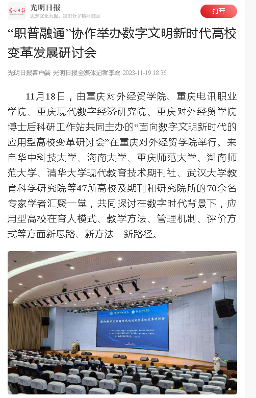 光明日报:《“职普融通”协作举办数字文明新时代高校变革发展研讨会》