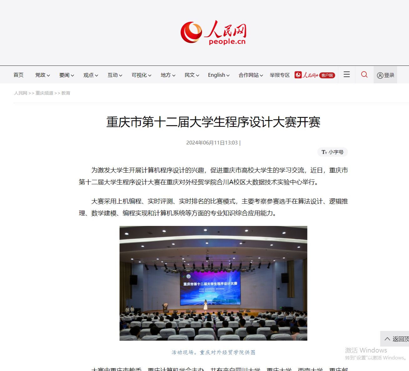 供稿部门:人民网 作者: 审核人:宣传部 发布时间:2024年06月12日 16:51 阅读量: