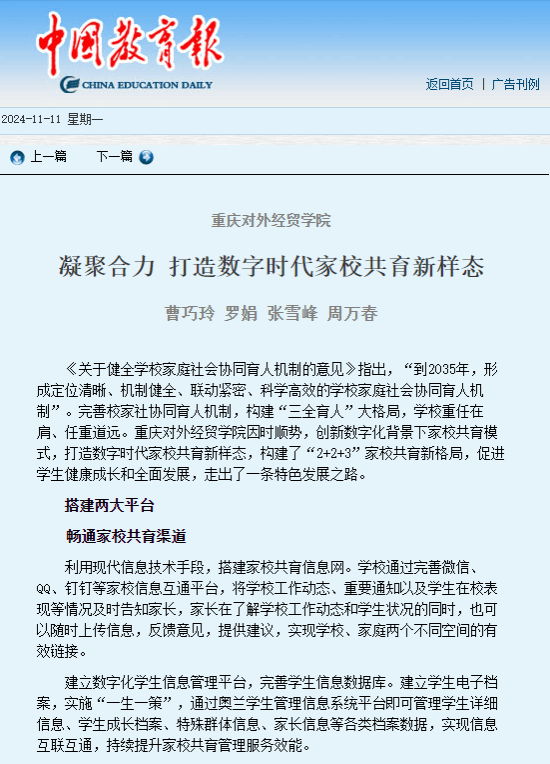 《中国教育报》报道36365线路检测中心入口 凝聚合力 打造数字时代家校共育新样态
