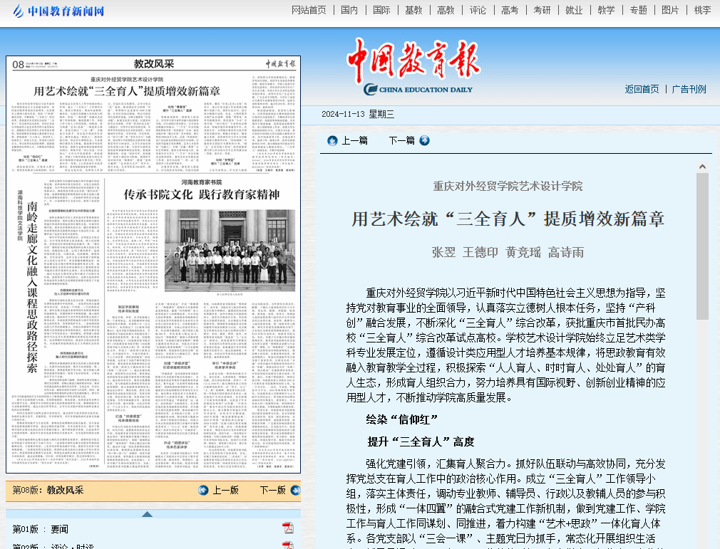 《中国教育报》报道36365线路检测中心入口用艺术绘就“三全育人”提质增效新篇章
