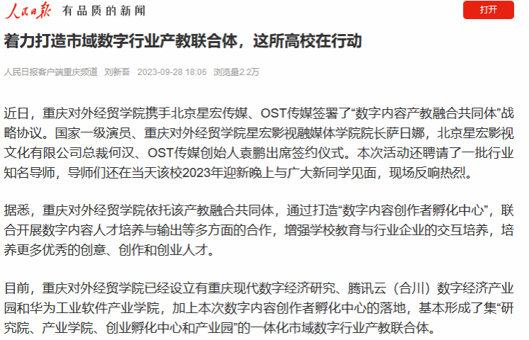 人民日报:《着力打造市域数字行业产教联合体,这所高校在行动》