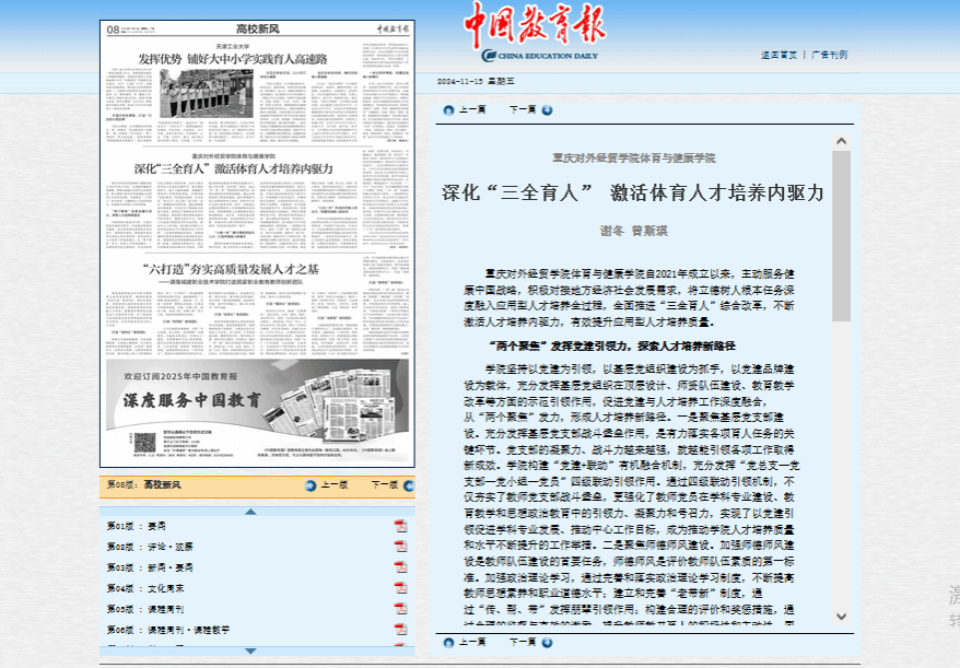 《中国教育报》报道36365线路检测中心入口体育与健康学院 深化“三全育人” 激活体育人才培养内驱力