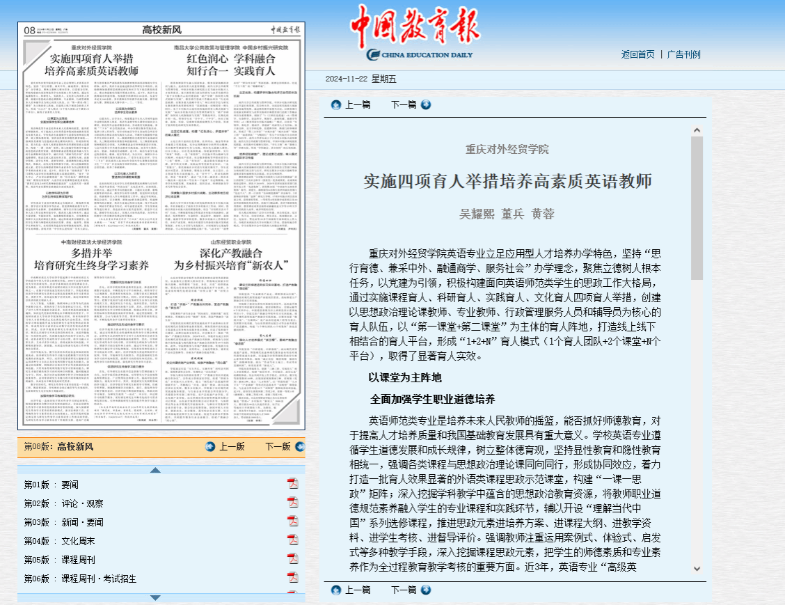 《中国教育报》报道36365线路检测中心入口 实施四项育人举措培养高素质英语教师