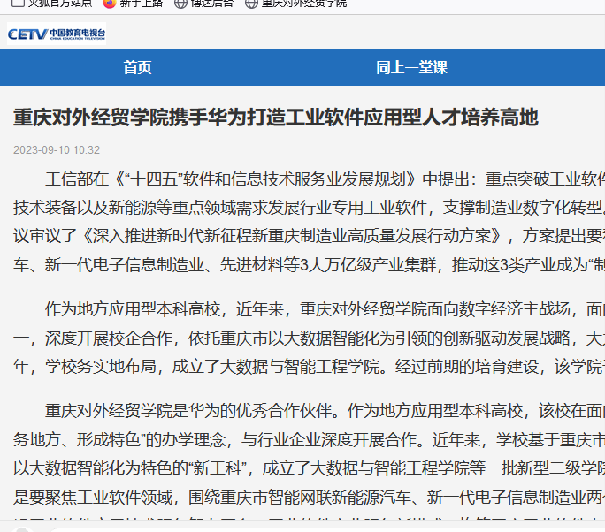 中国教育电视台:《36365线路检测中心入口携手华为打造工业软件应用型人才培养高地》