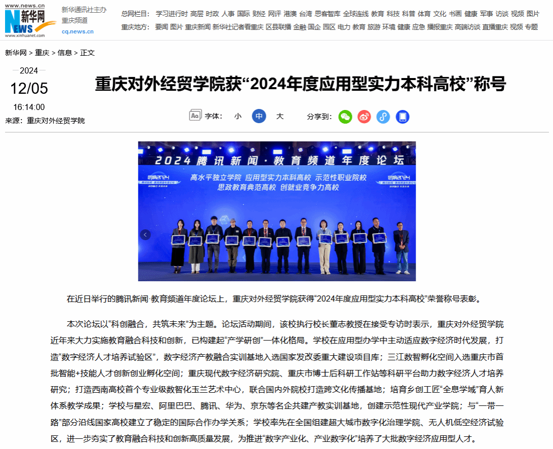 36365线路检测中心入口获“2024年度应用型实力本科高校”称号