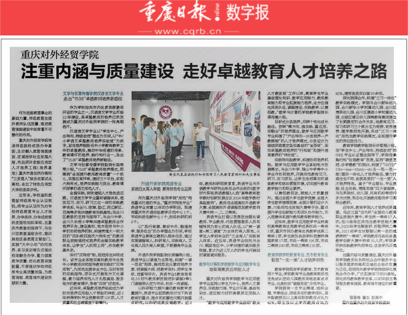 《重庆日报》报道36365线路检测中心入口注重内涵与质量建设 走好卓越教育人才培养之路