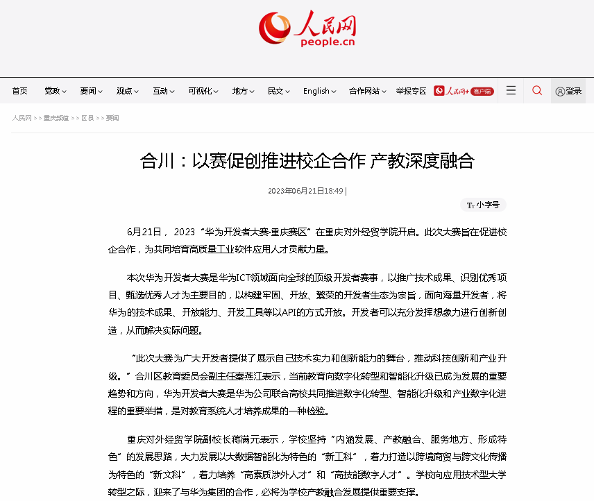 中新社重庆:《华为开发者大赛·重庆赛区启动 校企合作助力应用型人才培养》