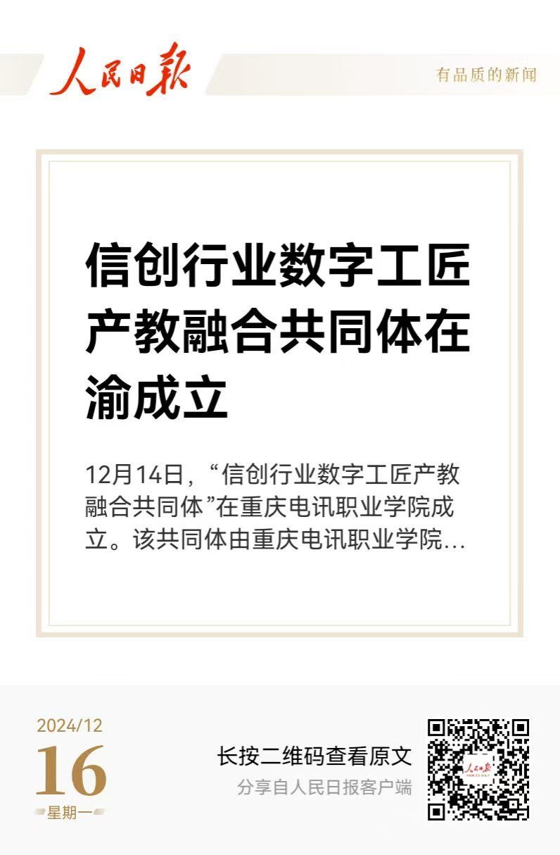 人民网日报等媒体报道信创行业数字工匠产教融合共同体在渝成立