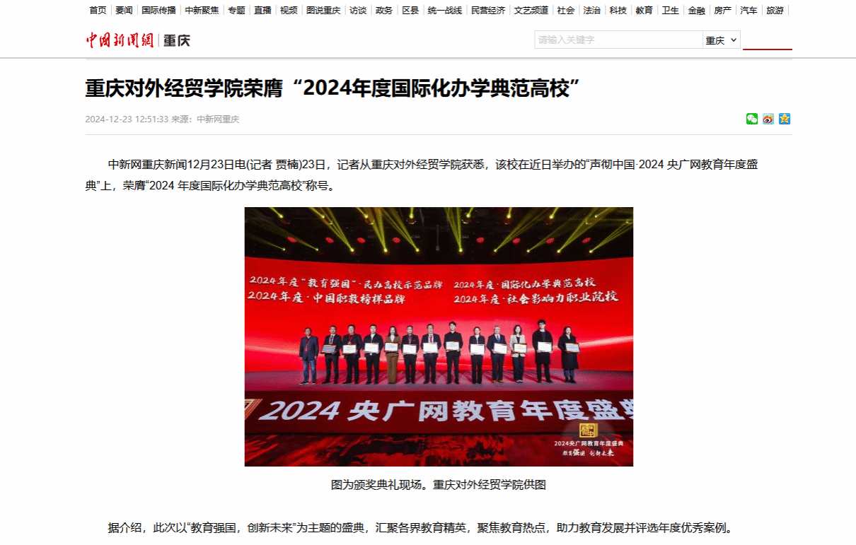 中国新闻网报道36365线路检测中心入口荣膺“2024年度国际化办学典范高校”