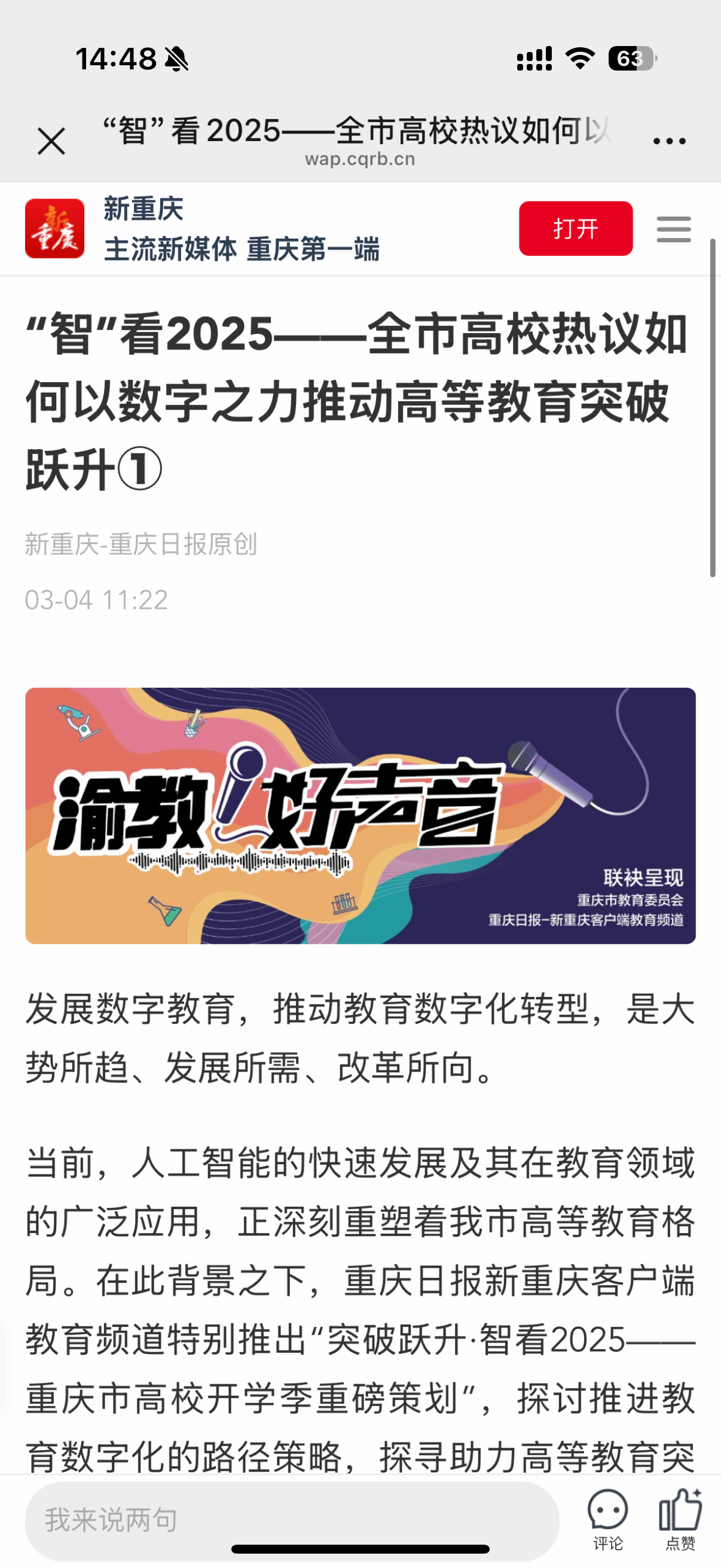 《重庆日报》报道“智”看2025——全市高校热议如何以数字之力推动高等教育突破跃升