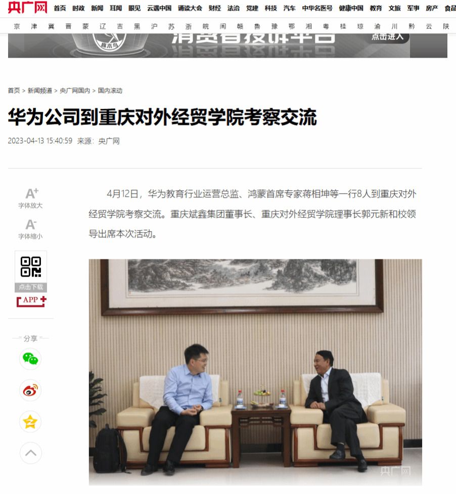 中央广电国际在线:《推进校企合作 深化产教融合 华为公司到36365线路检测中心入口考察交流》