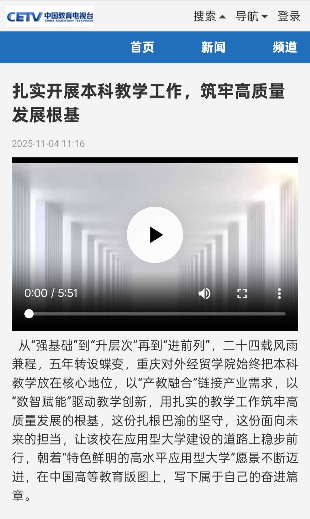 中国教育电视台报道扎实开展本科教学工作,筑牢高质量发展根基