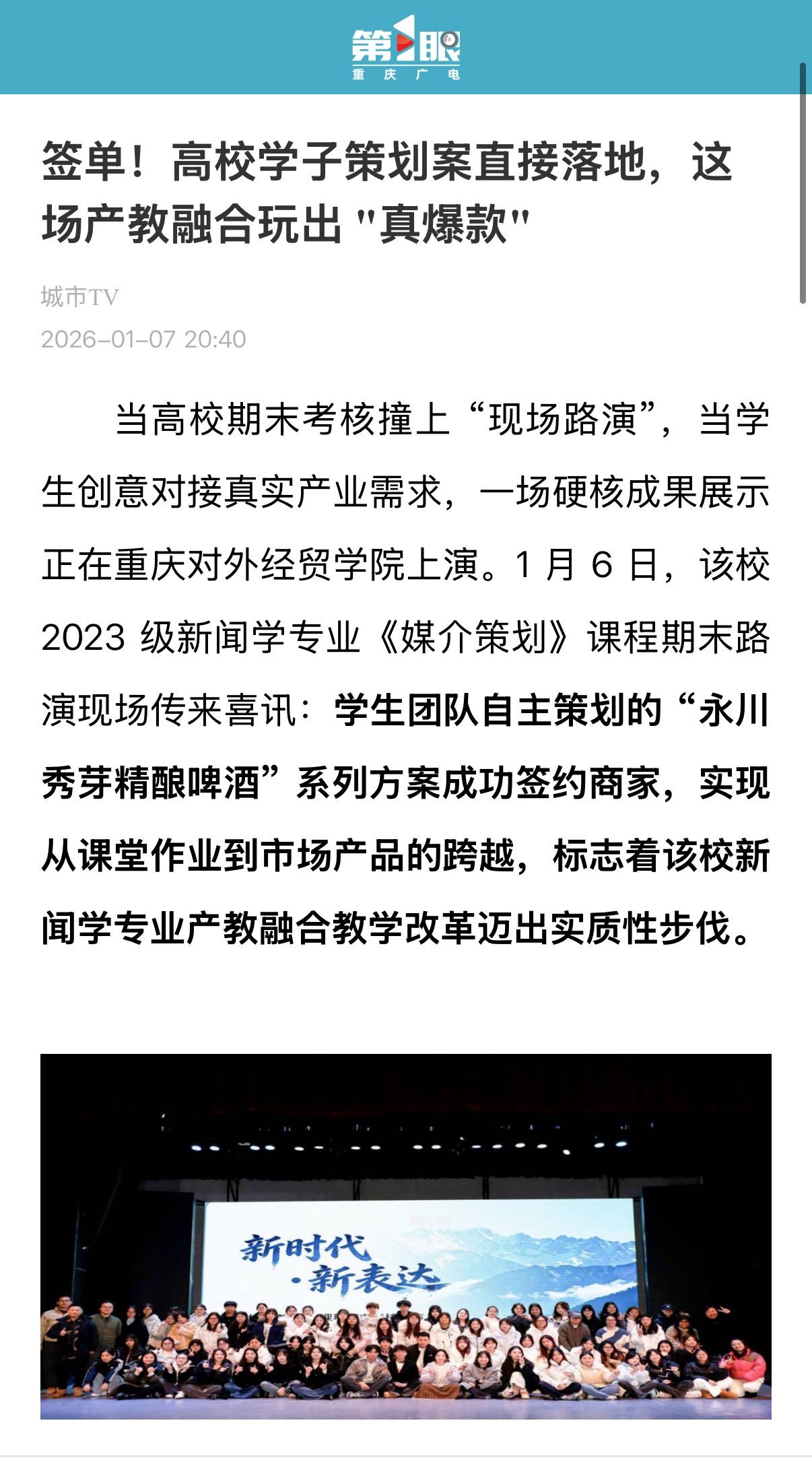 重庆广电第一眼报道签单!高校学子策划案直接落地,这场产教融合玩出 "真爆款"