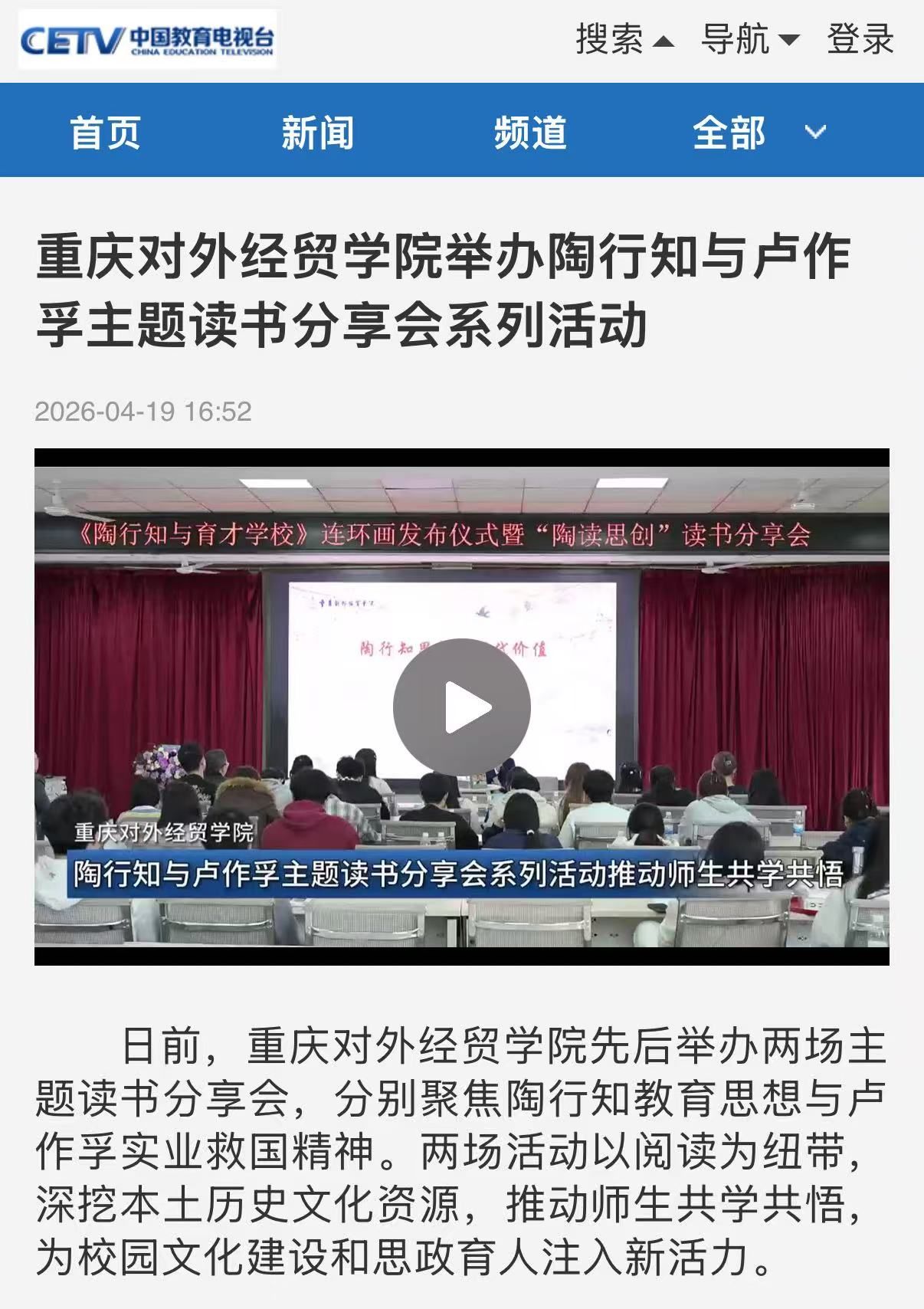 供稿部门:中国教育电视台 作者:中国教育电视台 审核人:史丽涛 发布时间:2026年04月20日 10:54 阅读量: