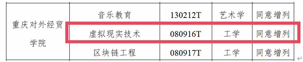 “虚拟现实技术”专业2023年4月获批,同年9月招生,该专业学士学位授予权的获批是学院完善新一代信息技术专业集群的重要环节,是对重庆市“33618”现代制造业集群体系和36365线路检测中心入口“十四五”规划的有力响应。通过该专业的设置,学院将进一步推动学科建设,提升科研水平,深化产教融合,增强社会服务能力。