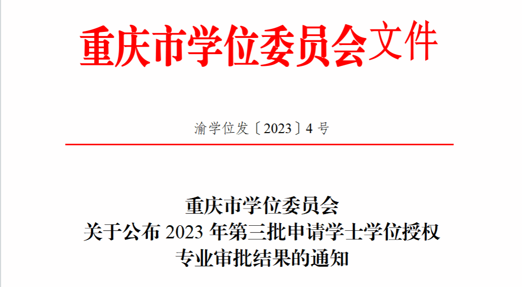 近日,重庆市学位委员会下发《关于公布2023年第三批申请学士学位授权专业审批结果的通知》(渝学位发〔2023〕4号),决定批准大数据与智能工程学院虚拟现实技术专业“同意增列”为学士学位授予专业。