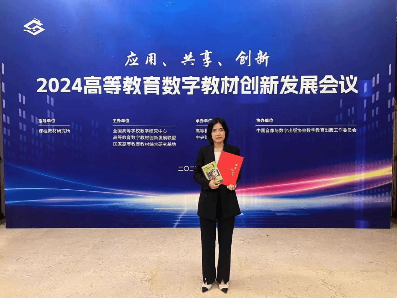 在学校教务处统筹下,外语外贸学院李霓教授和王玉云教授担任总主编,邹其彦副教授和曾雪梅副教授担任分册主编的《数字时代职场英语教程 个人技能篇》荣获首批“高等教育数字教材创新发展会议2024年数字教材典型案例”。