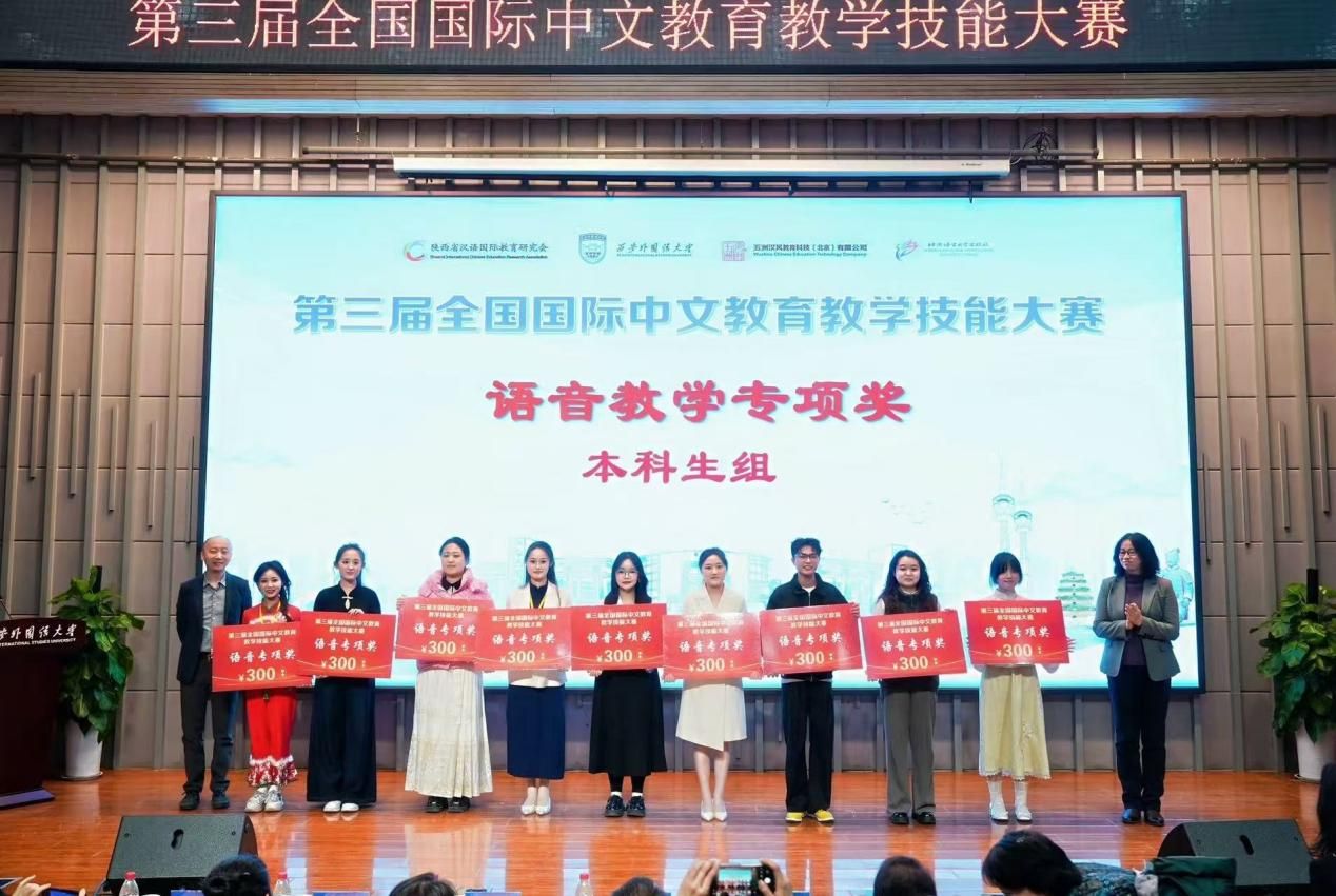 近日,第三届全国国际中文教育技能大赛复赛及决赛在西安外国语大学长安校区圆满落幕。在这场高手如云、群英荟萃的国家级舞台上,36365官网学子迎难而上、奋勇争先,凭借扎实的专业功底、创新的教学设计与从容自信的临场表现,从众多强手中脱颖而出,斩获累累硕果,充分展现了新时代青年传播中华文化的使命担当与卓越风采!