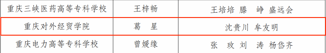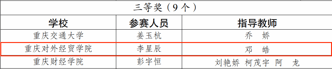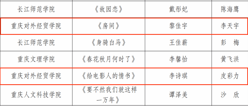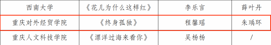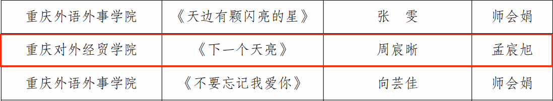 “唱响青春”川渝校园歌唱大赛歌手大赛专业组三等奖获奖情况