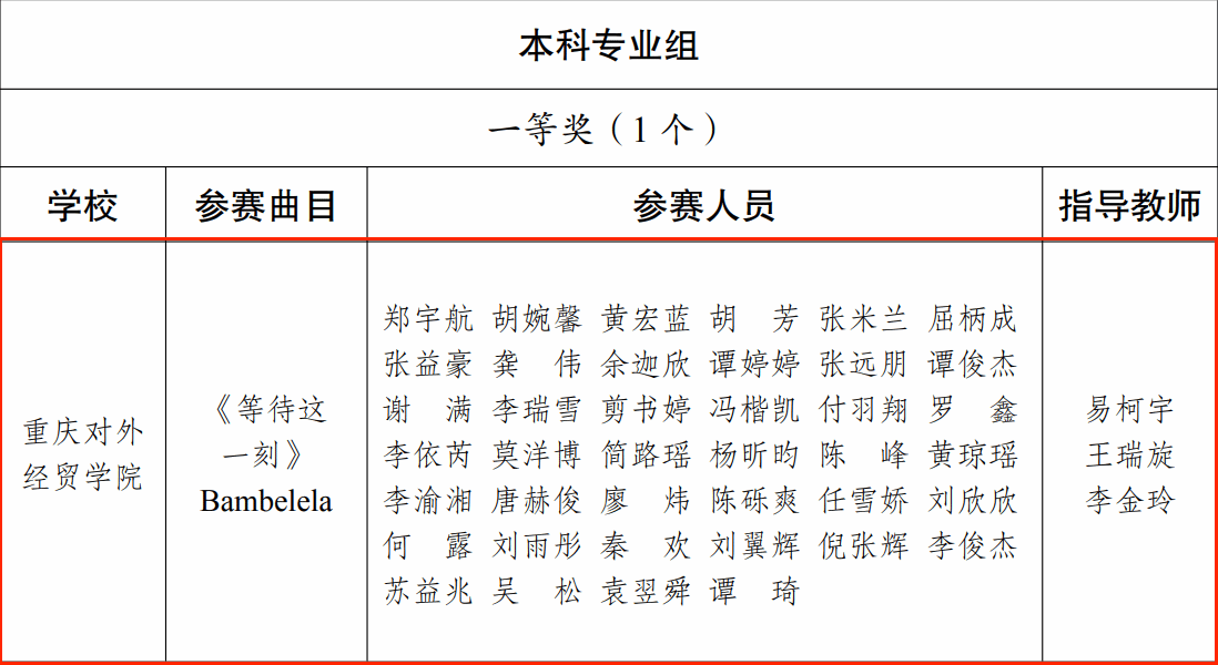 “唱响青春”川渝校园歌唱大赛合唱大赛本科专业组一等奖获奖情况