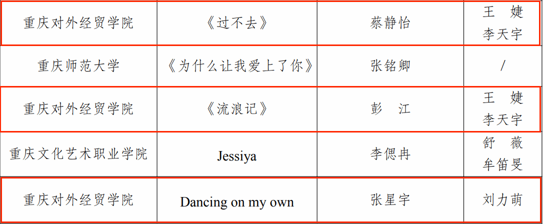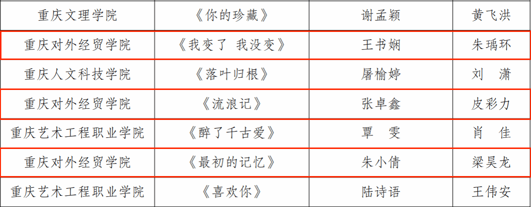 “唱响青春”川渝校园歌唱大赛歌手大赛本科专业组一等奖获奖情况