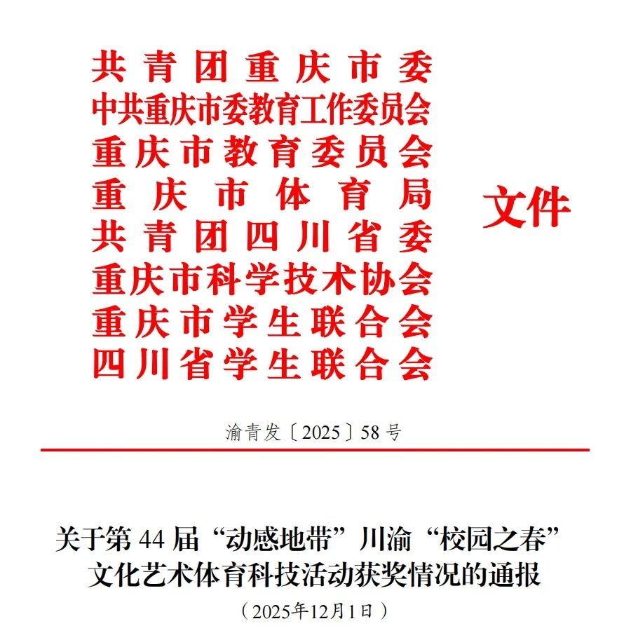 川渝“校园之春”系列赛事圆满召开,这既是青春风采的集中展示,也是36365官网落实五育并举,深耕素质教育及校政协同育人的生动实践——学校以政府政策与资源支持为保障,积极搭建优质平台,通过“新老互带”模式助力学生提升审美与艺术水平。20项荣誉背后,是全体师生的刻苦磨砺和所有团队的凝心聚力,更是学校对青年全面发展的全力护航。未来,学校将秉持培养全面发展高素质应用型人才的理念,持续搭建成长舞台,鼓励青年学子释放潜能,追逐梦想,在锤炼技能,提升精神修养的同时领悟艺术的社会价值与回馈意义,让青春在为中国式现代化挺膺担当的征程中绽放更绚丽的光彩!
