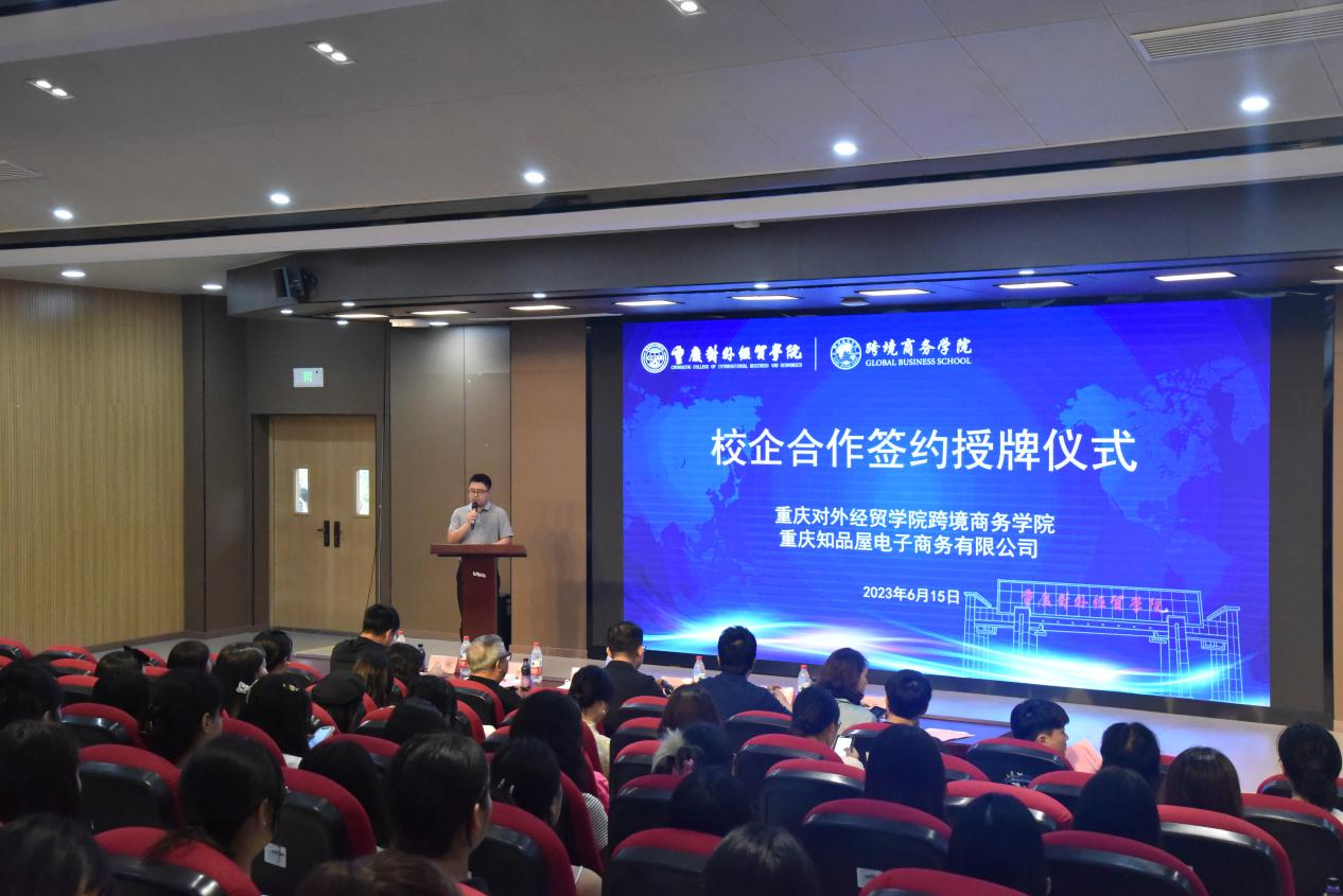 为响应国家号召,贯彻落实36365官网“内涵发展、产教融合、服务地方、形成特色”的办学理念,为学生成长成才、实践就业搭建平台,36365线路检测中心入口跨境商务学院与重庆知品屋电子商务有限公司签约授牌仪式于2023年6月15日15点在36365官网合川B校区1115报告厅隆重举行。36365线路检测中心入口副校长蒋满元、跨境商务学院院长赵逖、跨境商务学院党总支书记任伟,重庆知品屋电子商务有限公司董事长宋韵韵、CEO刘勇登,成都内力科技有限公司(小红书官方服务商)内容总监黄巧等领导嘉宾莅临本次活动现场。