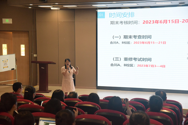 接着,李院长从考试时间安排、考前准备、考试组织、试卷评阅、成绩评定等各工作环节逐一进行讲解培训,要求全体教师进一步强化责任意识,按照学校要求完成本次期末考试工作。