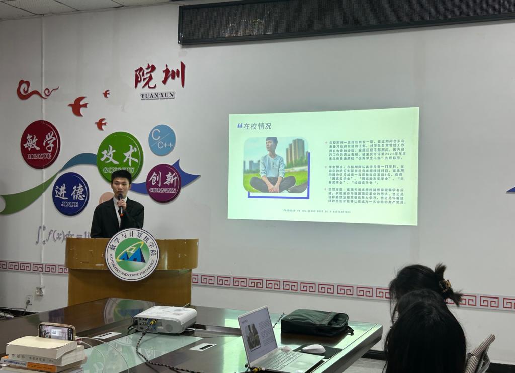 大赛最后,数学与计算机学院党总支书记尹翔老师对本次大赛做总结发言,用三个“感谢”,表达了对参赛选手、工作人员和2020级学工团队的认可,并对由2020级学工团队针对就业工作打造的就业能力提升计划表达赞许。尹书记对于本场参赛选手的表现给予高度的赞扬,展出了数计学子的风采,同时,鼓励2020级的同学们要大胆的主动出击,迎接挑战,找到适合自己的舞台,尽情书写自己的人生。